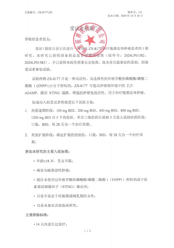上一篇: 评价YB-01 在晚期实体瘤患者中的安全性、耐受 性、药代动力学特征、免疫原性及初步有效性的开放、多中心、剂量递增和剂量 扩展的I期临床研究