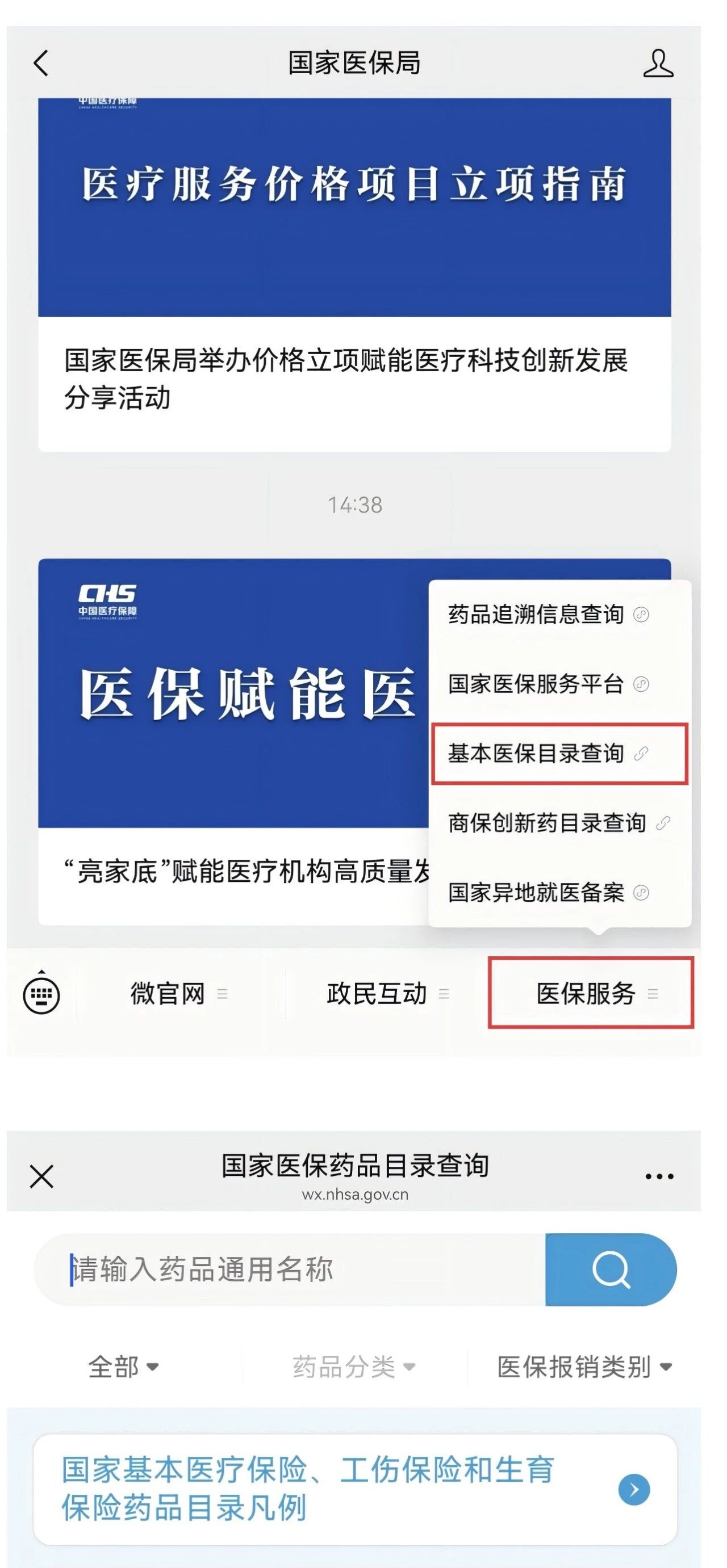 TIPS:参保人可通过搜索“国家医保局”微信公众号,点击“医保服务”—“基本医保药品目录查询”,实时查询医保药品目录。